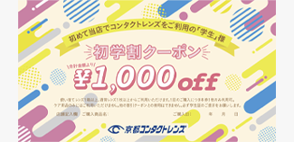 2023年2月1日初めて京都コンタクトレンズをご利用の「学生」様向けのお得なクーポン!「初学割クーポン」