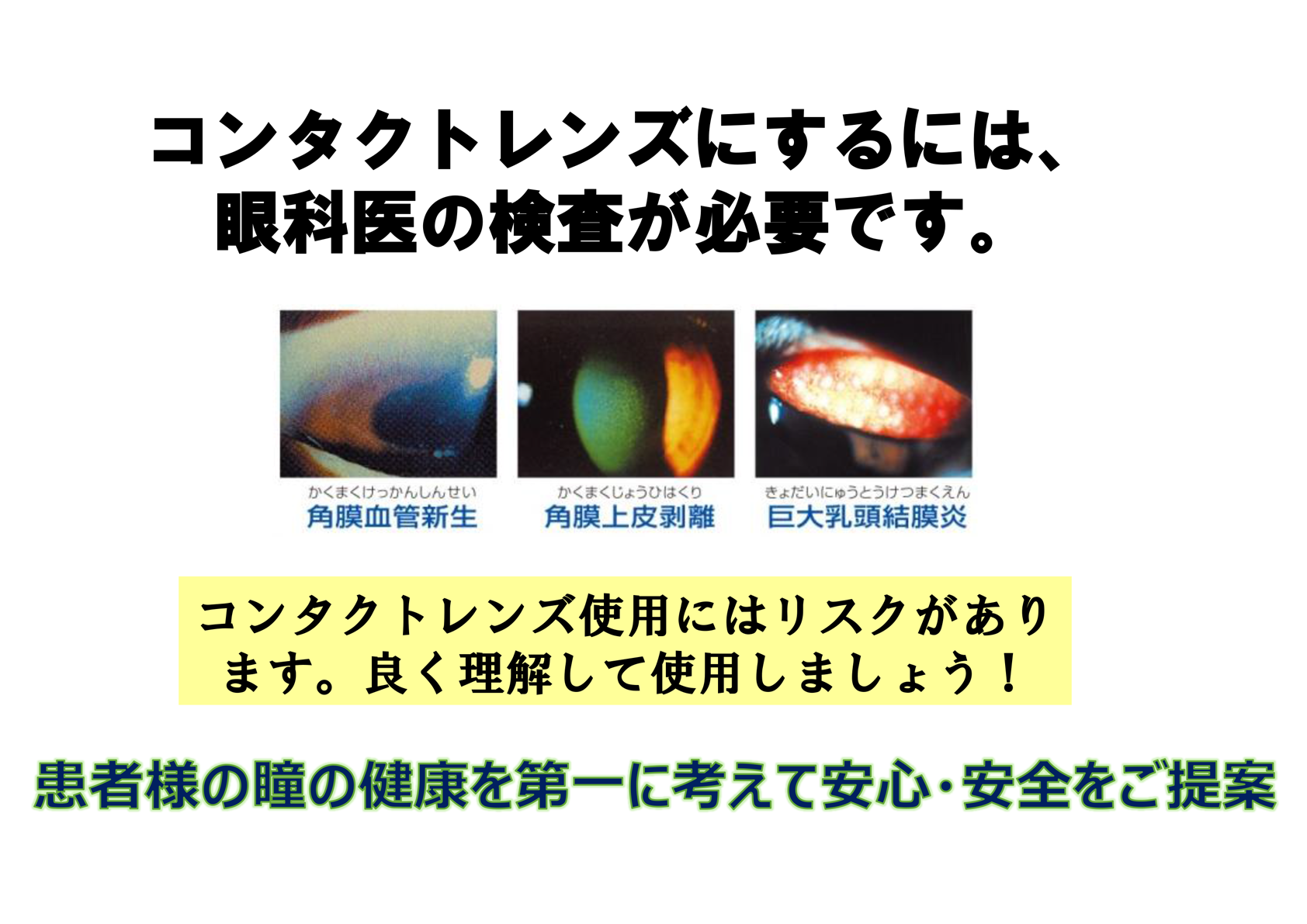 コンタクトレンズにするには、眼科医の検査が必要です。
