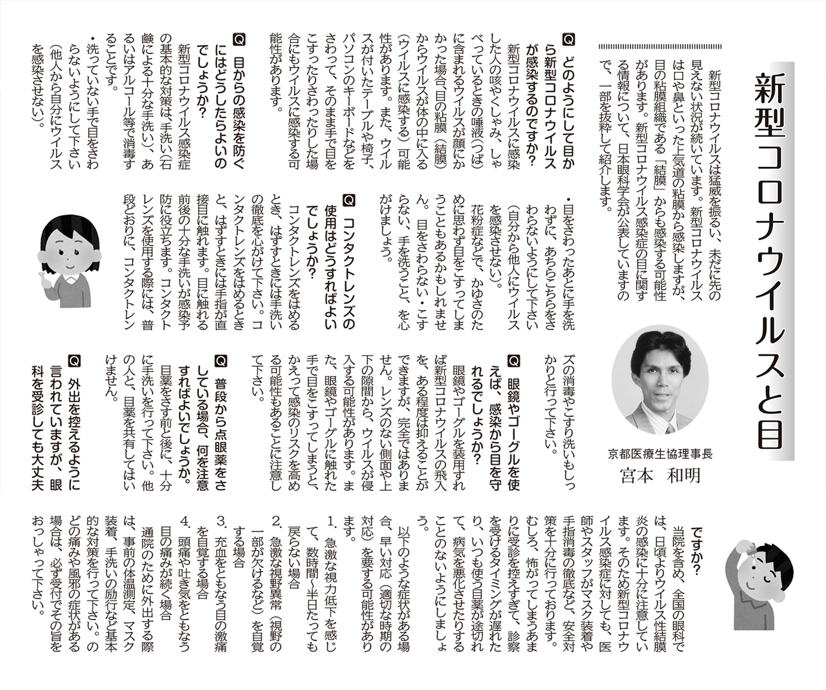 京都医療生活協同組合発行「つくる健康」より「新型コロナウイルスと目」